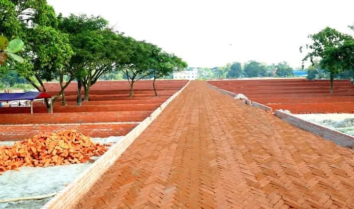 হোগলাডাঙ্গা পিচ ঢালাই শেষ ডান হাতে ইট সোলিং রোডের মাথায়